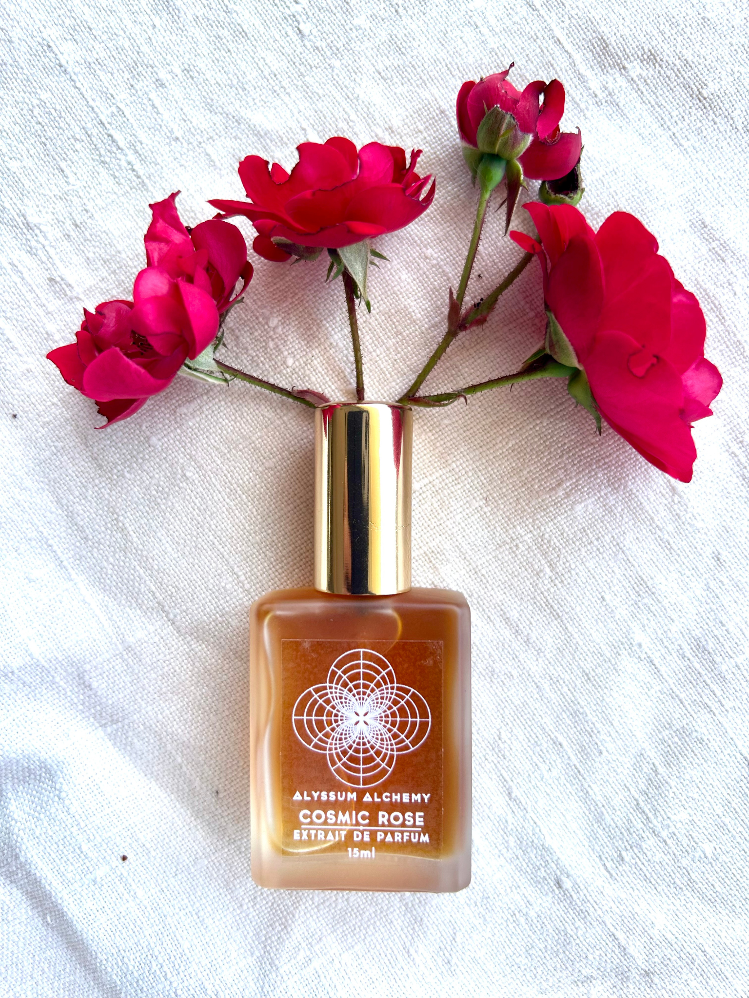 - Sweet, sensual and seductive, this traditionally crafted Extrait de Parfum, Cosmic Rose is an artistic expression of the velvet depths and ancient lineage of the Rose and its cosmic origins.