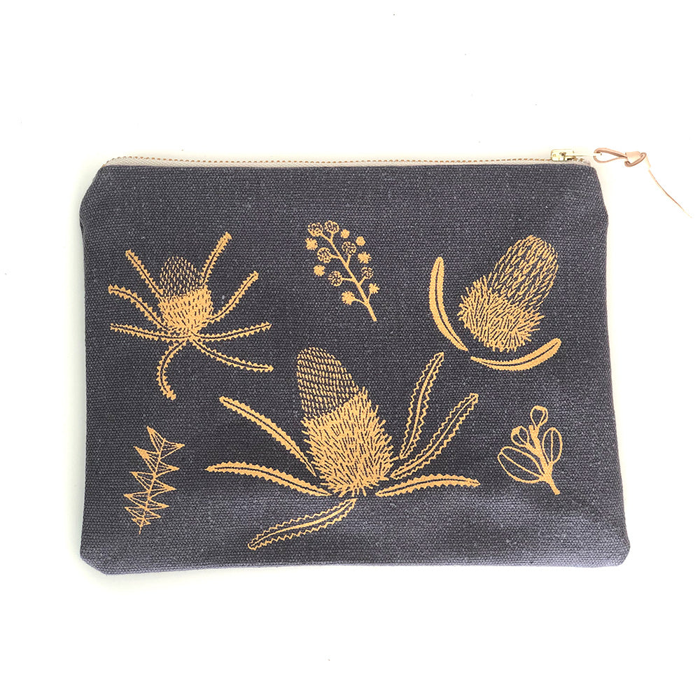 Handmade Banksia Pouch - Charcoal and Gold