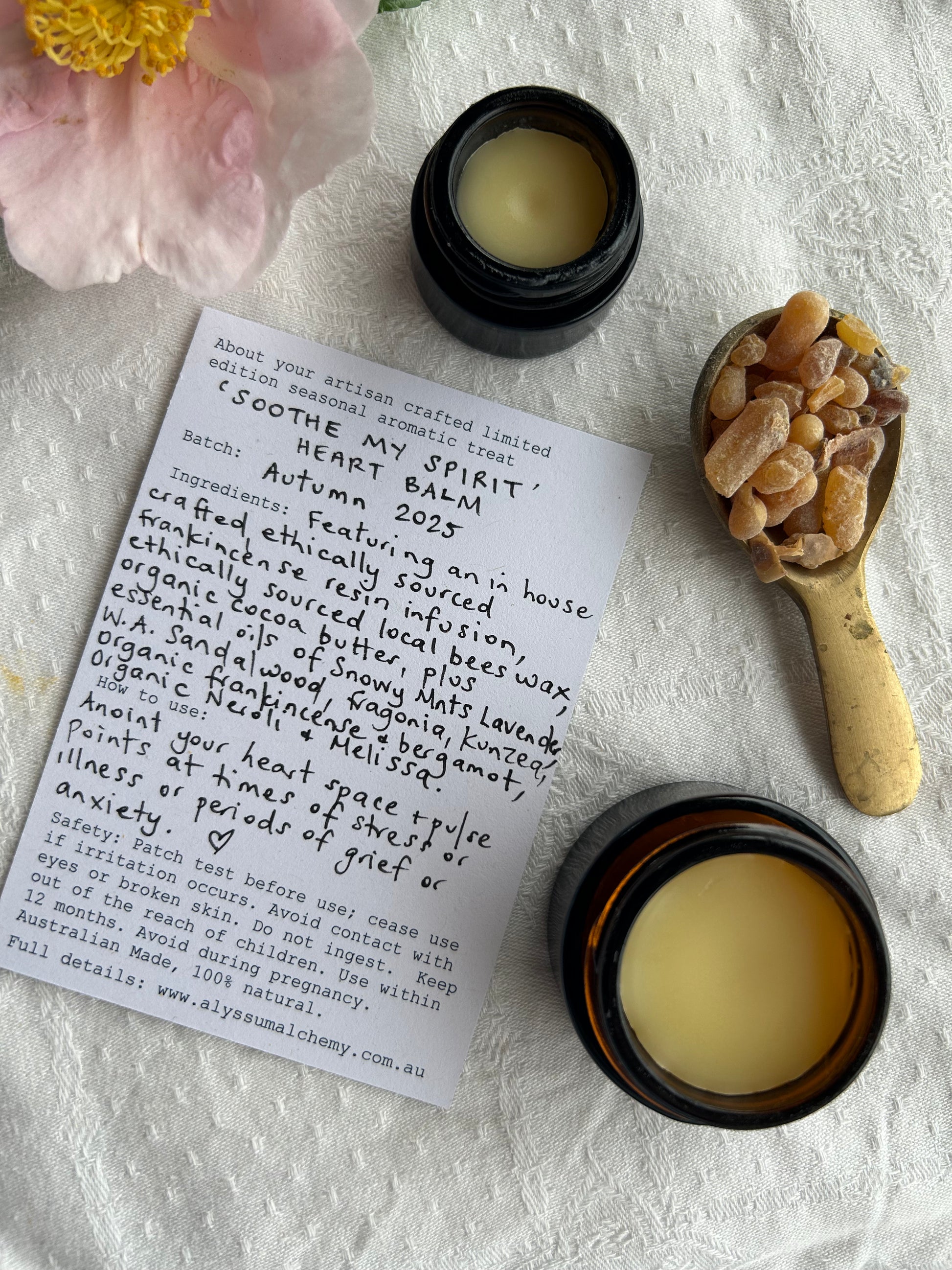 Featuring heart softening essential oils of biodynamically grown NSW Snowy Mountains alpine Lavender, organic Moroccan Neroli oil and sacred Melissa (lemon balm). Balancing and fortifying Australian native botanicals of Fragonia, Kunzea and Australian Sandalwood anchor, ground and support energetic congruence.